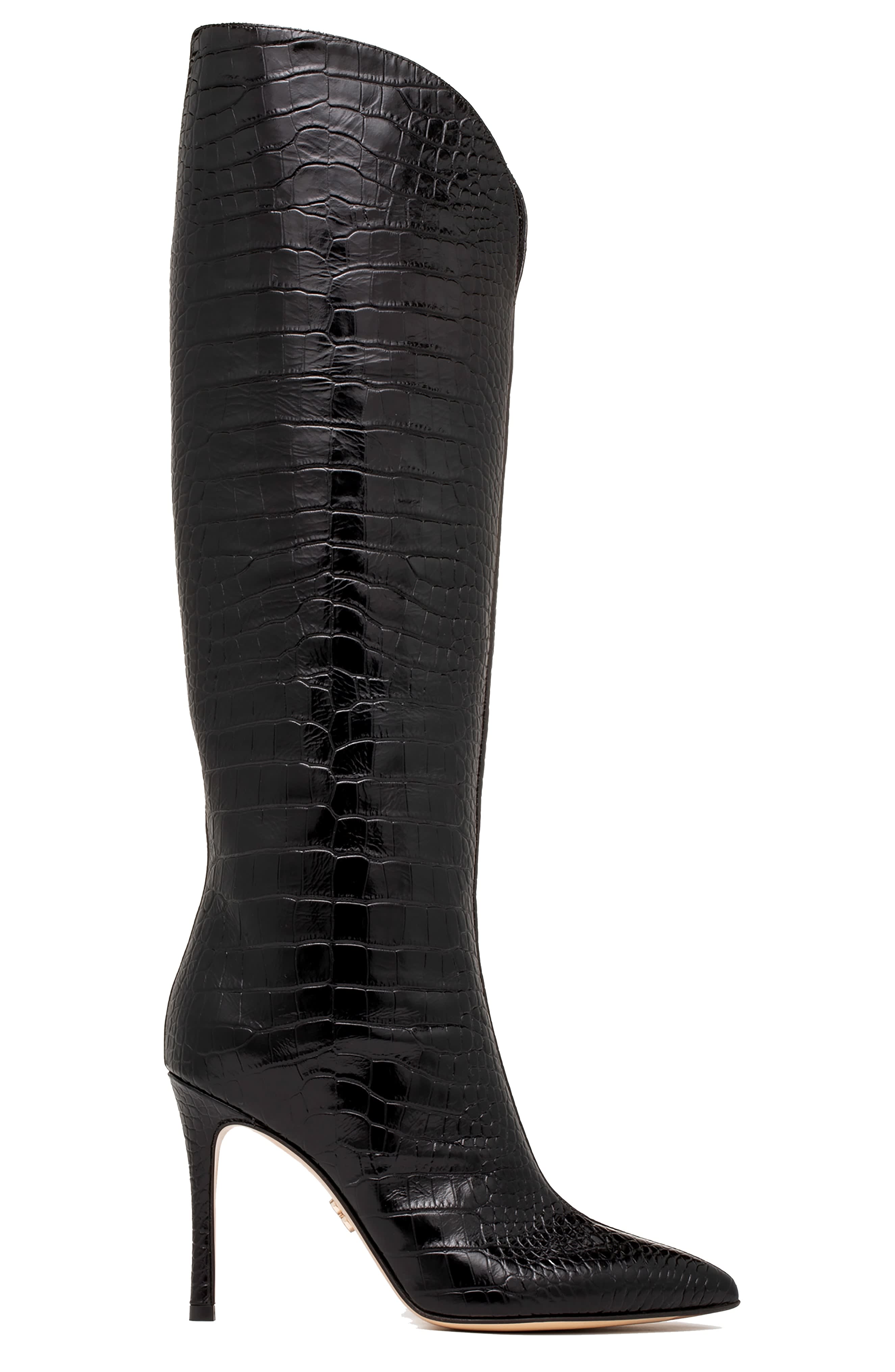 Peyton Black Embossed Leather Evening Work Knee High Stiletto Boot by Beautiisoles by Robyn Shreiber Made In Italy Very well made.