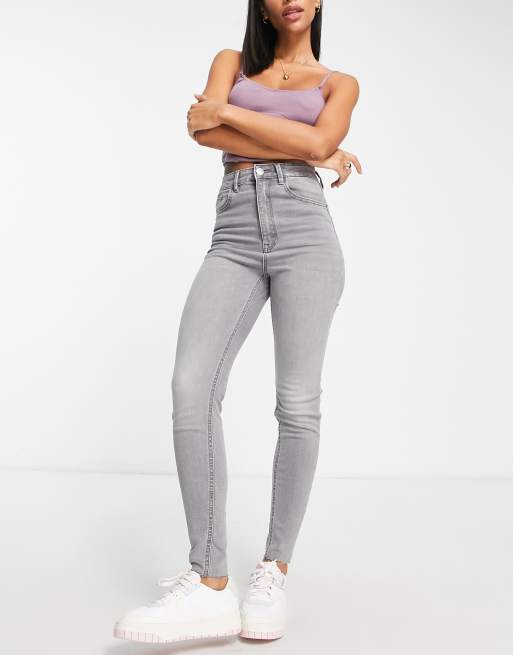 Stradivarius super high waist skinny jean in gray Very well made.