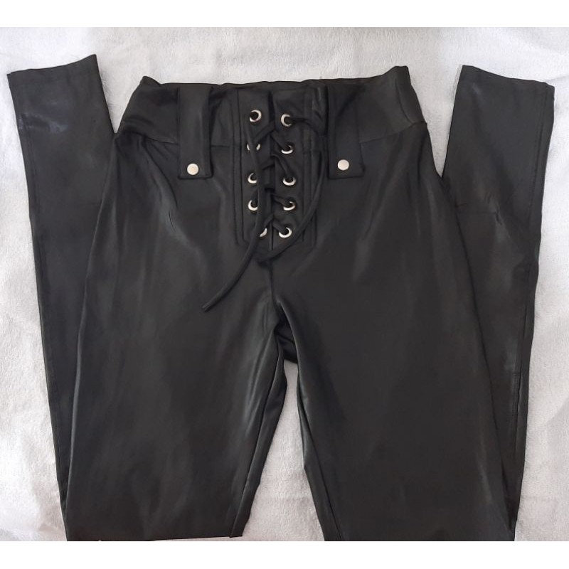 Cal a Cirr Imita Couro Cintura Alta Ilh s Ilhoses Feminina Rock Very well made.