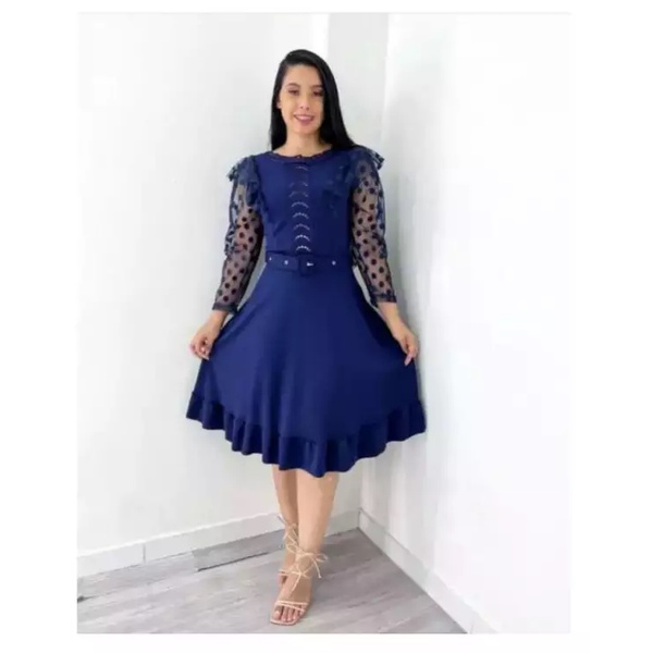 VESTIDO MIDI GOD TULE MODA EVANG LICA REF.1290 AZUL MARINHO Very well made.