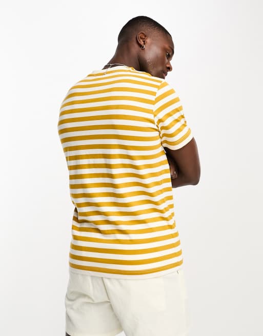 Levis Men Yellow White Striped Round Neck Pure Cotton T shirt Very well made.