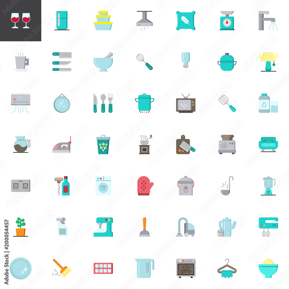 Homeware elements collection flat icons set Colorful symbols Very well made.