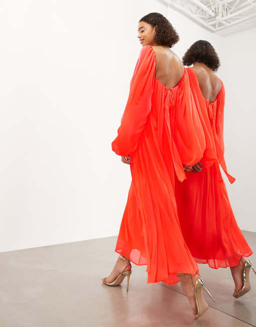 ASOS EDITION square neck chiffon maxi dress in neon coral Very well made.