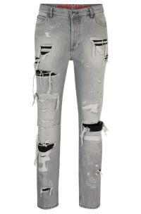 HUGO Tapered fit jeans in heavily distressed silver grey denim Very well made.