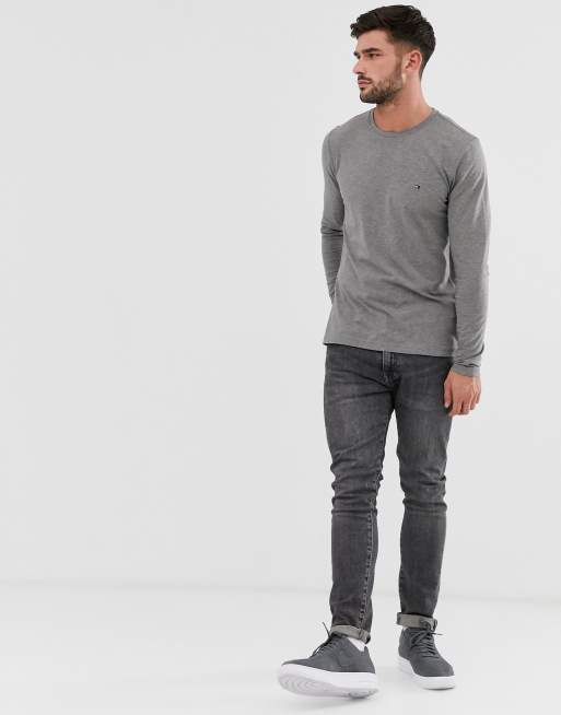 Tommy Hilfiger slim fit classic logo long sleeve t shirt in gray Very well made.